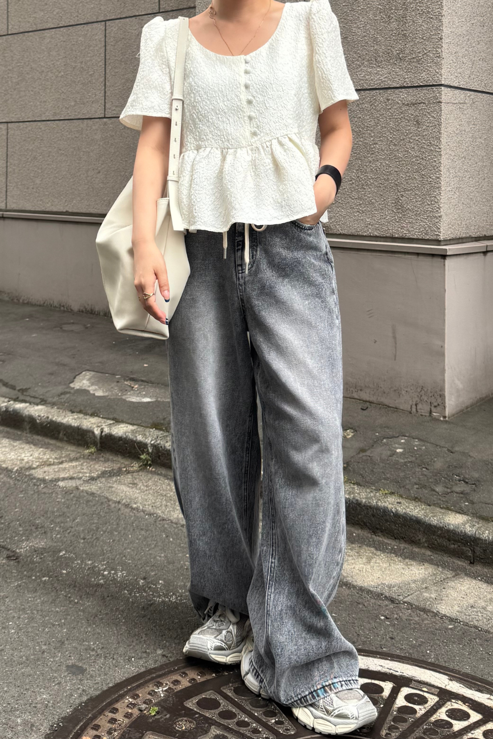 肌馴染みの良いアイボリーは、デニムやスラックスなどどんなボトムとも好相性◎ カジュアルダウンもドレスアップ